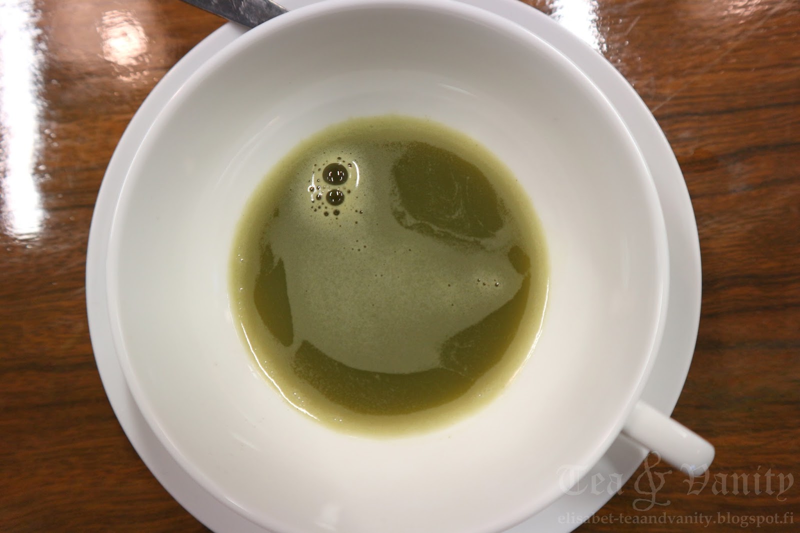 valkoisesta teestä tehdyillä teehelmillä. Valkoista teetä olen aiemmin juonut välillä, mutta en kauniiden teehelmien muodossa. Maku oli hento, heinäinen ja miellyttävä. Tiesittekö muuten, että toisin kuin yleensä luullaan niin valkoinen tee ei sisällä mitenkään erityisen vähän kofeiinia?